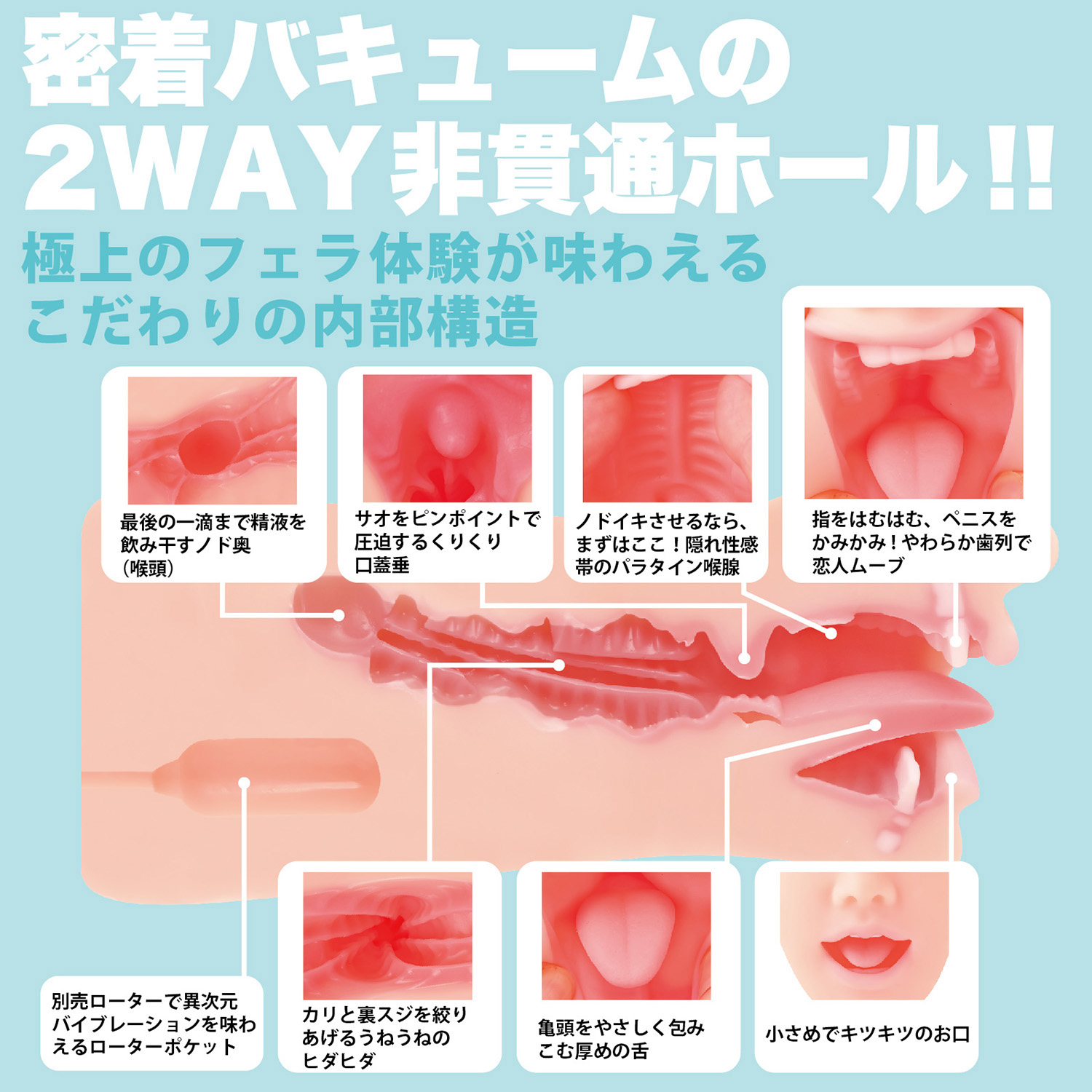 本人の完全監修によって、包み込むような厚舌とキツキツのお口を完全再現しつつ、電動タイプでは実現できなかった緻密な内部構造も造形化に成功。