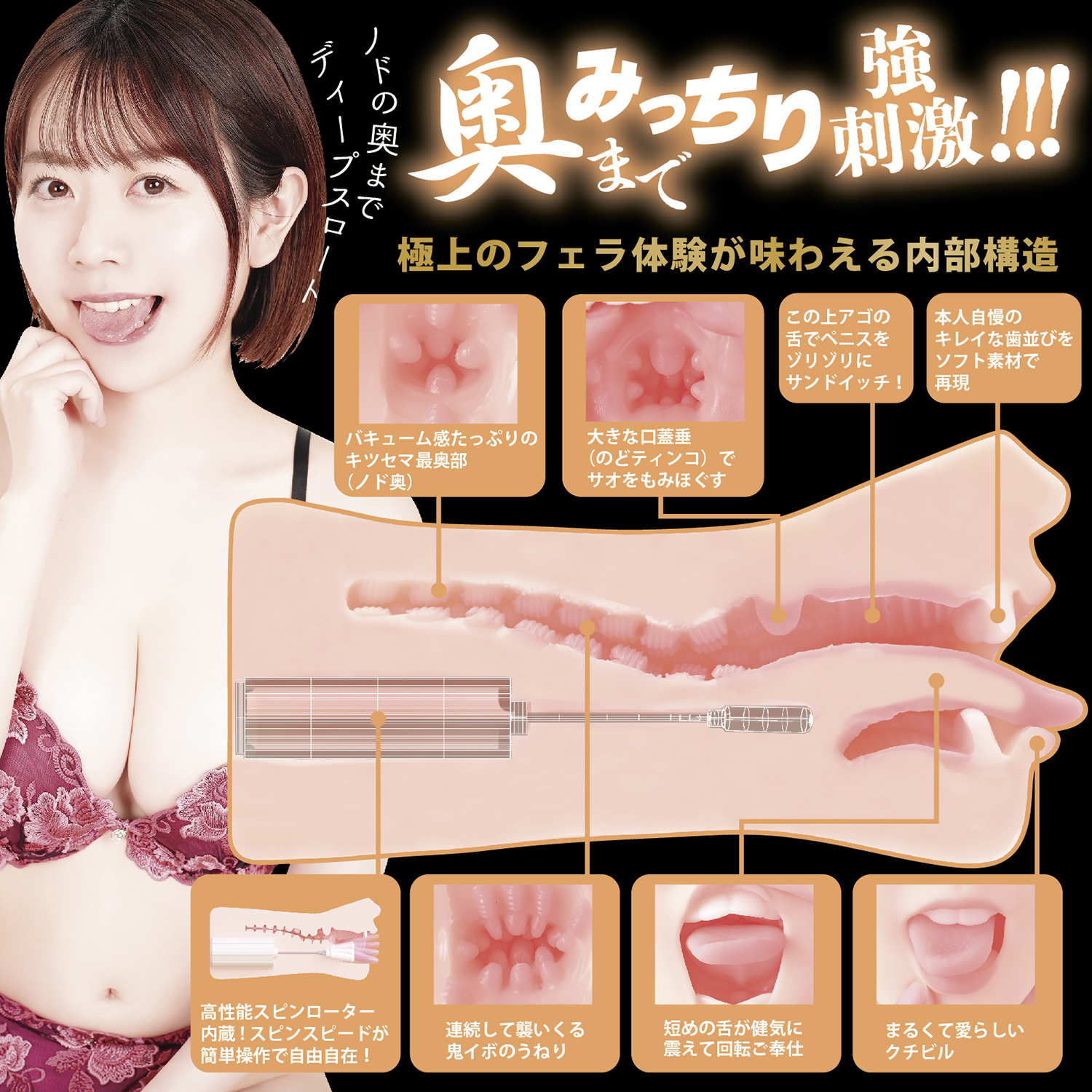 内部もリアルな口腔構造いっぱいで、本物そっくりな舌や歯並びが気持ちいい!